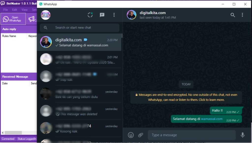 WAMASSAL adalah software berbasis dekstop PC Windows yang dapat digunakan untuk mengirimkan pesan WhatsApp secara massal.