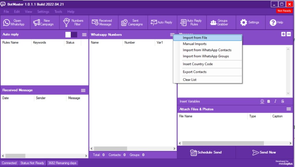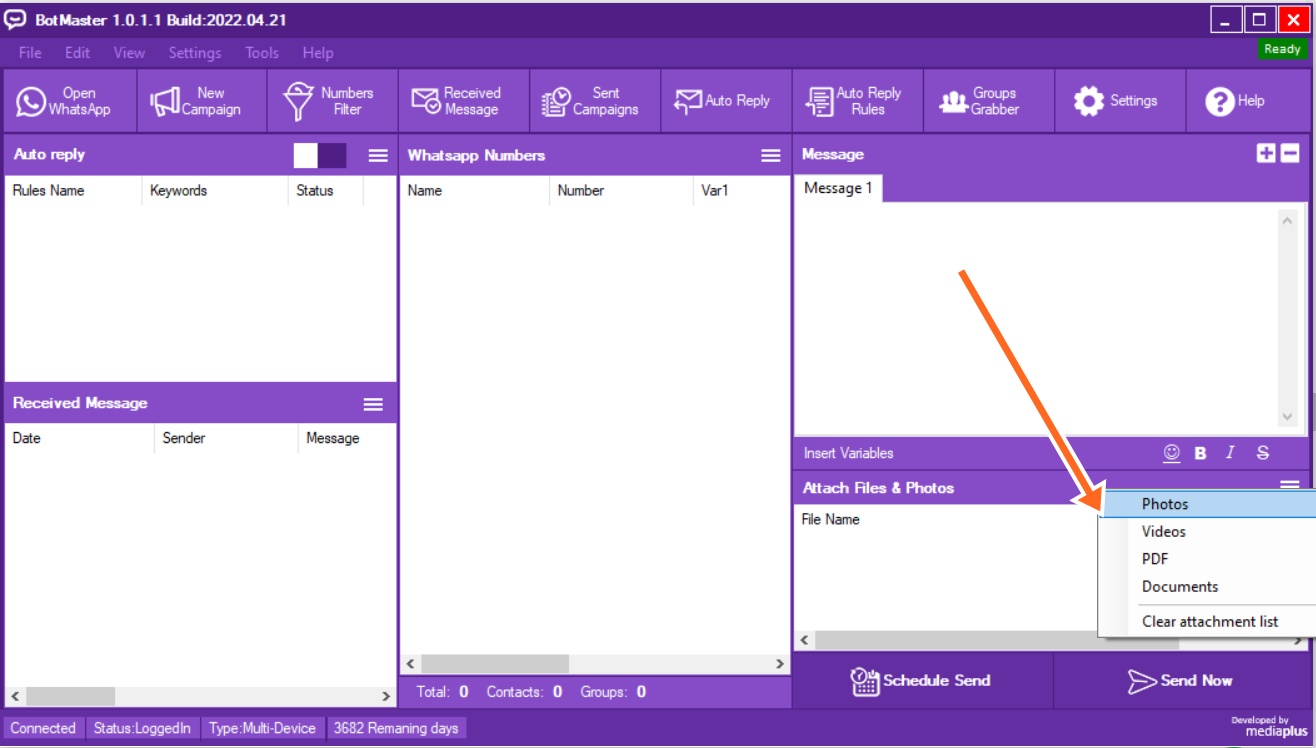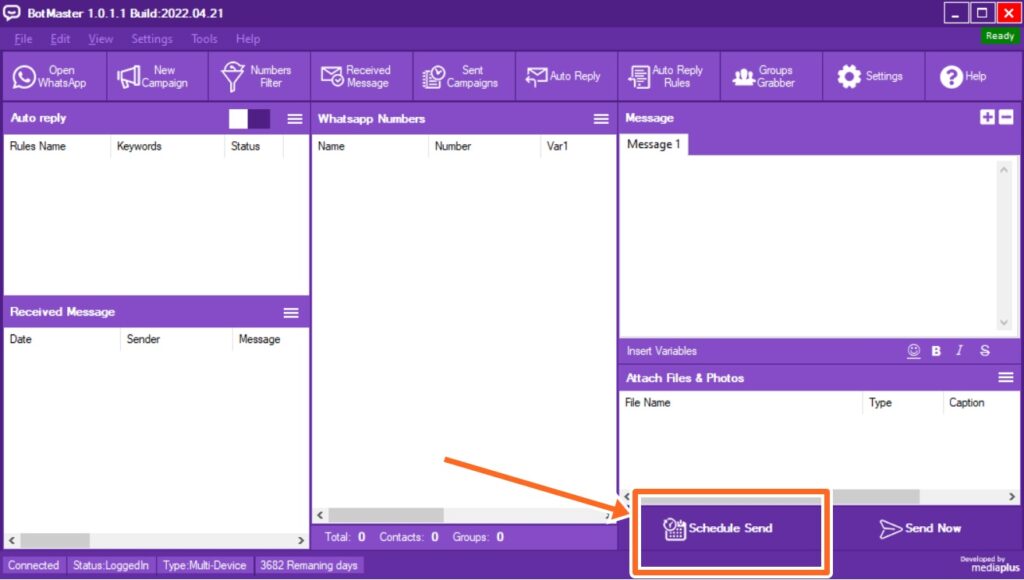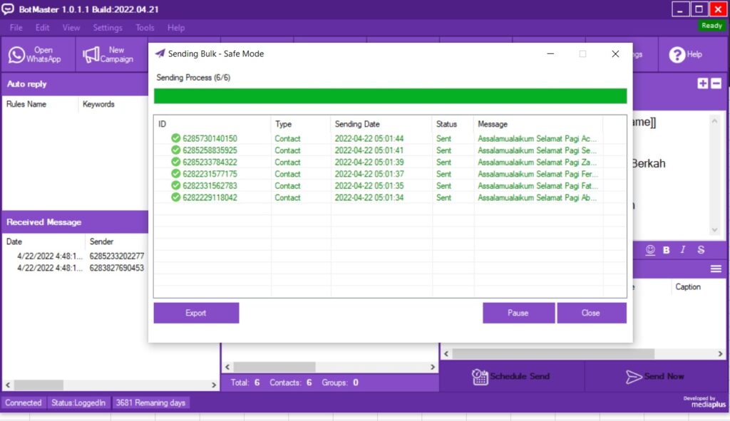 Mengirim pesan WhatsApp sebanyak yang Anda inginkan hanya dengan beberapa klik, dengan fitur multi pesan dan kontrol pengiriman super lengkap.
