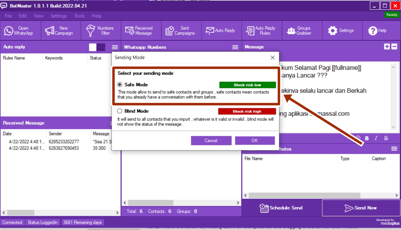 - Kirim pesan ke banyak nomor hanya dengan 1x klik