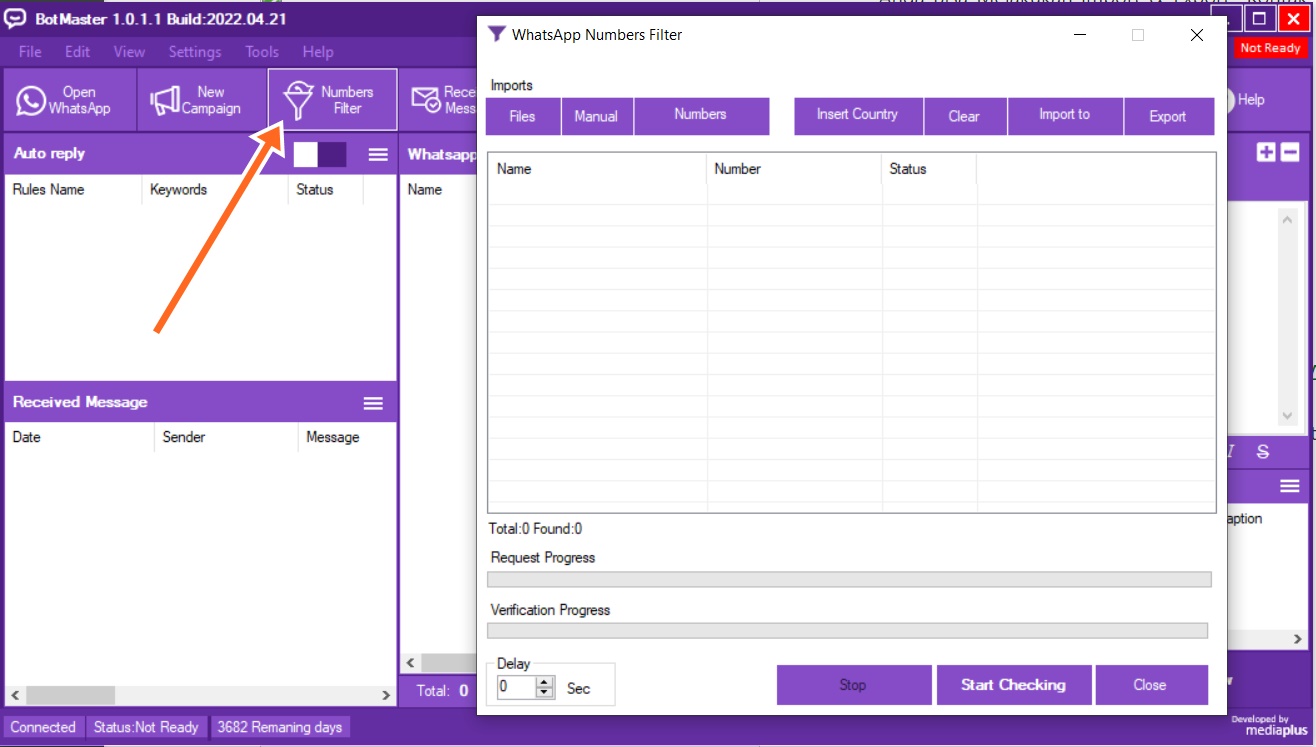 Fitur generate nomor berdasarkan prefix operator dalam jumlah tak terbatas, kemudian pisahkan nomor tidak aktif dan nomor yang menggunakan WA.